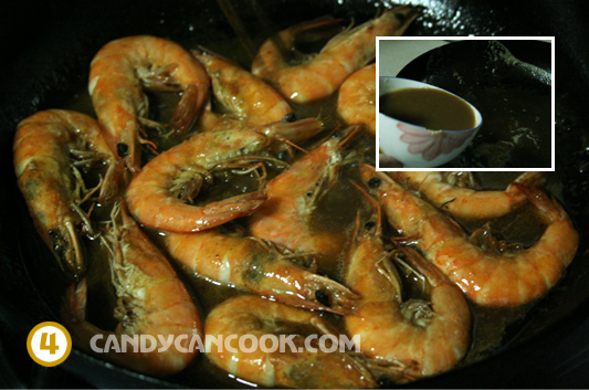 - Sau đó cũng dùng chính cái chảo đó, cả nhà đổ nước cốt me vào, cho thêm chút đường, chút mắm nữa nhé rồi đun sôi và thả tôm vào đun khoảng 10’ tới khi thấy nước cốt me sánh hẳn lại và thấm vào tôm là được. Nêm nếm lại cho vị vừa nhé. Lưu ý là vì mình ướp tôm trước rồi nên khi nếm thì chỉ cần chấm đũa vào nước sốt me thấy vị vừa là được: chua ngọt là vị chính nhé :D