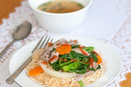 Thế là xong rồi đấy cả nhà ạ :D … Món này khi ăn thì cho mì lên trước rồi múc thịt bò với rau lên trên mặt. Cả nhà nhớ ăn kèm với một bát súp nhỏ (nước trần mì và trần rau) có rắc kèm chút hành tươi. Chồng tớ rất thích cách serve này vì ăn mì xào thì thường là hay dễ ngán và hơi khô. Mình có thêm bát súp nho nhỏ như vậy ăn sẽ thấy thú vị và ngon hơn rất nhiều đấy :D … Món này rất dễ làm và đặc biệt là ăn rất dễ nghiện hehe :P …