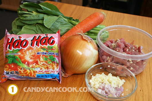 Suốt thời gian ở Sing tới cũng làm bạn với mì gói. Loại mì gói tớ thích nhất mọi thời đại là mì Hảo hảo chua cay :D … Đi đâu, chưa biết thế nào thì kiểu gì tớ cũng mang theo thùng mì gói đã rồi tính sau :P … Haizz, nên vali đi nước ngoài của tớ bao giờ cũng có chỗ cho mì gói haha … Hồi ở Sing trưa nào tớ cũng ăn mì gói vì có một mình cũng lười, nên cứ làm thân với anh mì gói thôi :P … Sang Mĩ tớ lo nhất là k mua được mì gói vì xác định là chắc vài năm mới về VN, ai ngờ sang đây lại thật dễ dàng mua :D … Trời ơi, đi chợ châu Á mua nguyên thùng mì Hảo Hảo chẳng khó khăn gì mới ghê chứ ;) Chồng tớ cũng thích ăn mì gói cực nên thỉnh thoảng tớ lại làm món này, đảm bảo đủ chất rau thịt và chất bột mà lại nhanh nữa. Đặc biệt nhà tớ mới đi chợ Châu Á nên mua được ít cải ngọt nên hnay tớ muốn giới thiệu cùng cả nhà món này ngay. Hơn nữa, để làm được một đĩa mì gói xào thật ngon cũng k phải quá khó ngoài một vài điều lưu ý nho nhỏ. Nào, bắt đầu thôi cả nhà ơi^^