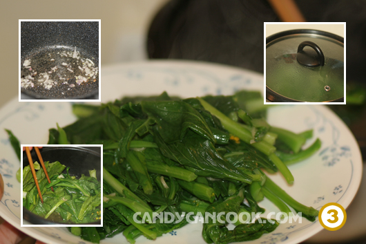 - Sau đó, dùng ngay cái nồi nước đó đun sôi lại và cho rau cải vào trần qua cho xanh ra vì “cần tái cái nhừ” … Làm như vậy mình có thể tận dụng lấy nước đó làm nước súp ăn kèm với mì xào rất ngon mà đỡ ngán lắm đấy. Mì tôm thường nhiều dầu nên khi mình trần rau bằng nước trần mì như vậy cũng sẽ làm cho rau mềm và ngon hơn đấy. Để cho nước sôi bùng lại khoảng 1’-2’ thì cả nhà vớt rau ra một cái đĩa nhé.