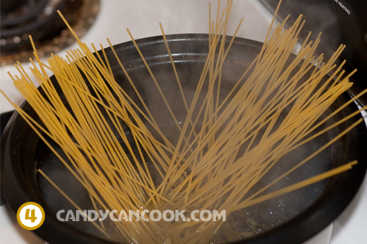 Luộc spaghetti và lưu ý cho muối để làm cho sợ mì đậm vị nhé
