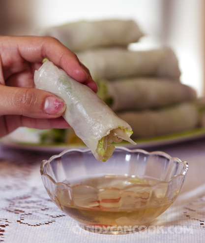 Món này mình làm là phở cuốn nên cách gói để tạo ra vỏ dày dai, giống bánh phở là quan trọng bạn ạ. Còn món bạn nói là gỏi cuốn (fresh spring roll)… Mình cũng đang định làm entry về món này cho vài người bạn nc ngoài :X