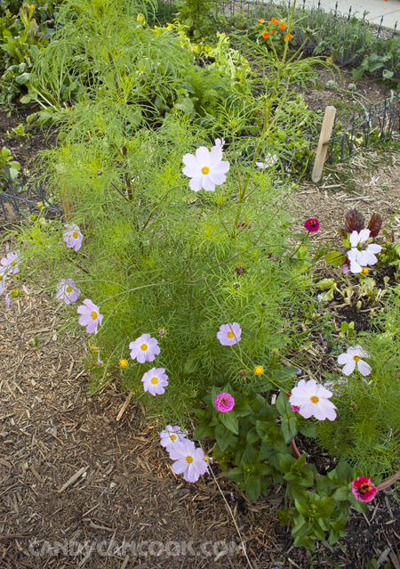 Khóm hoa cosmo và zinnia tớ trồng ở góc vườn đây ^^