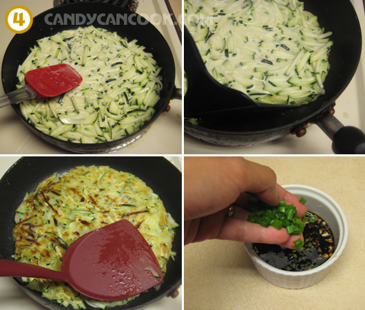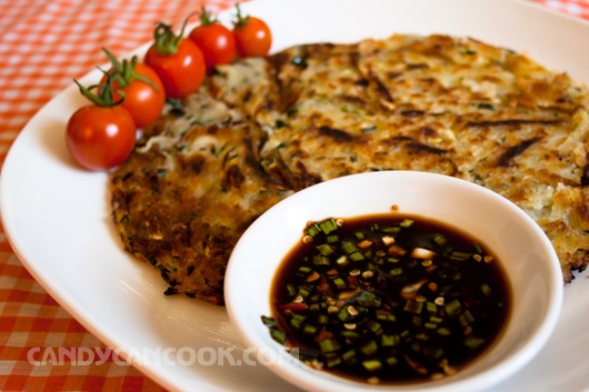 Yêu cầu của món này là bên ngoài ăn giòn nhưng khi cắn vào lại cảm nhận thấy vị ngọt tự nhiên của zucchini, kết hợp với nước chấm xì dầu thì trên cả tuyệt vời :X Ăn nóng ngay khi vừa ra khỏi chảo và đừng để bánh kịp bốc hết hơi nhé cả nhà ^^