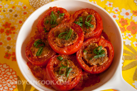 2. Cách làm: Quá trình nấu thì nhanh nhưng lúc chuẩn bị thì đòi hỏi thêm vài bước,. Nếu cả nhà bận thì có thể chuẩn bị trước nhân nhồi hoặc nhồi cà chua sẵn rồi cho tủ lạnh, tới khi nấu thì bỏ ra nấu thôi ^^