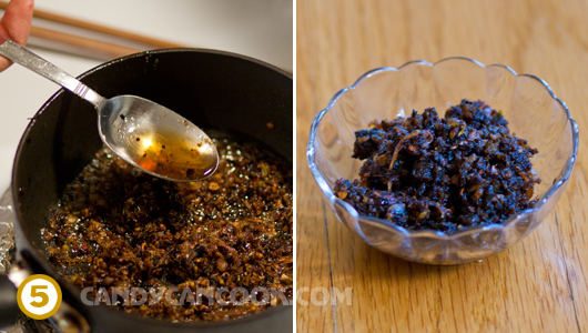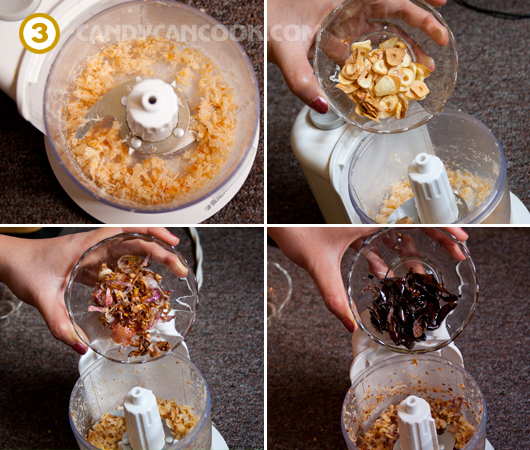- Tôm khô ngâm khoảng nửa tiếng rồi rửa sạch, cho vào máy xay (hoặc có thể dùng cối giã nhỏ), tiếp đến lần lướt cho hành khô, tỏi khô và ớt khô đã phi vào xay cho nhuyễn.
